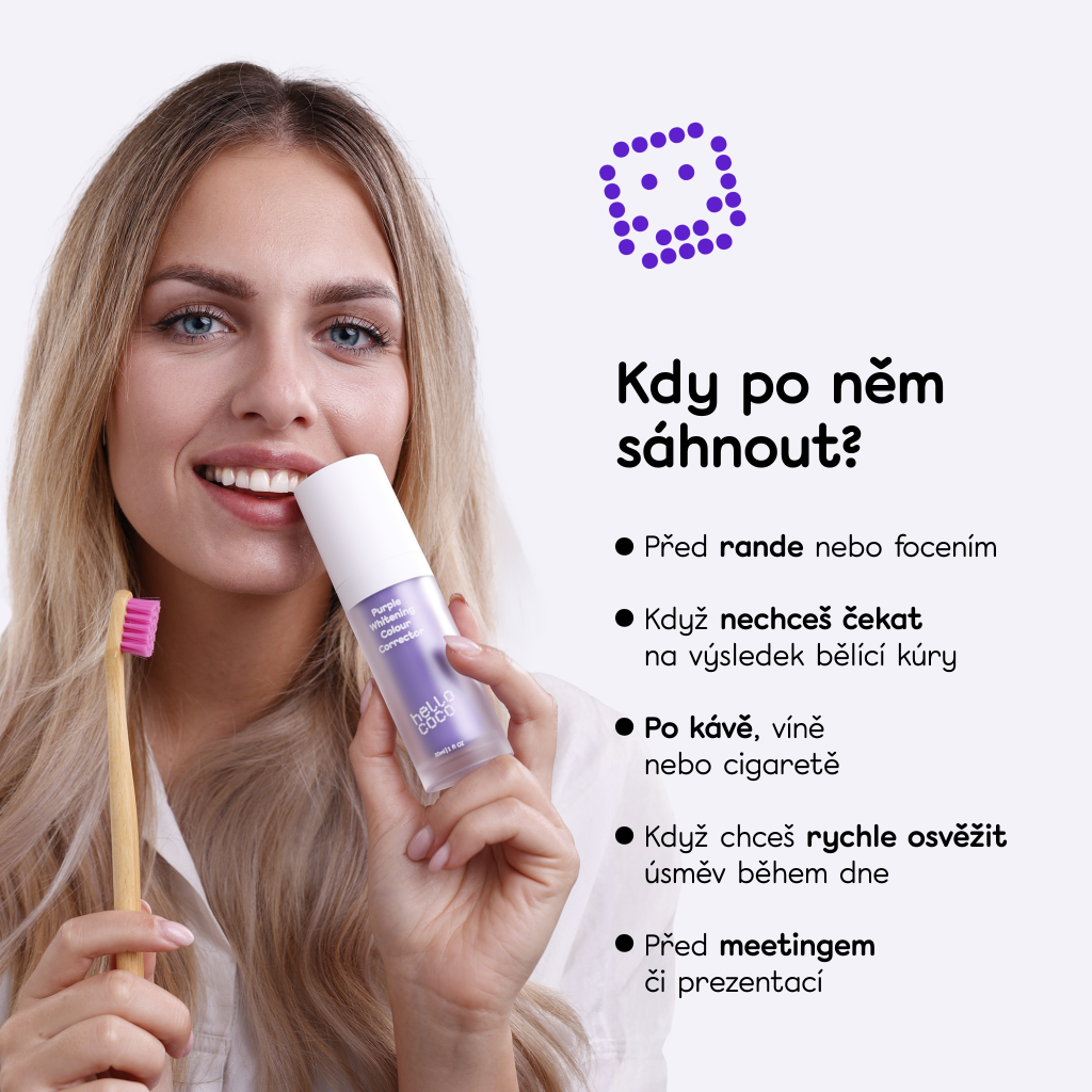 Barevný korektor je produkt pro korekci barvy a není navržen tak, aby nahradil vaši každodenní zubní rutinu. Doporučujeme používat Corrector ráno po vyčištění zubů vaší běžnou zubní pastou.