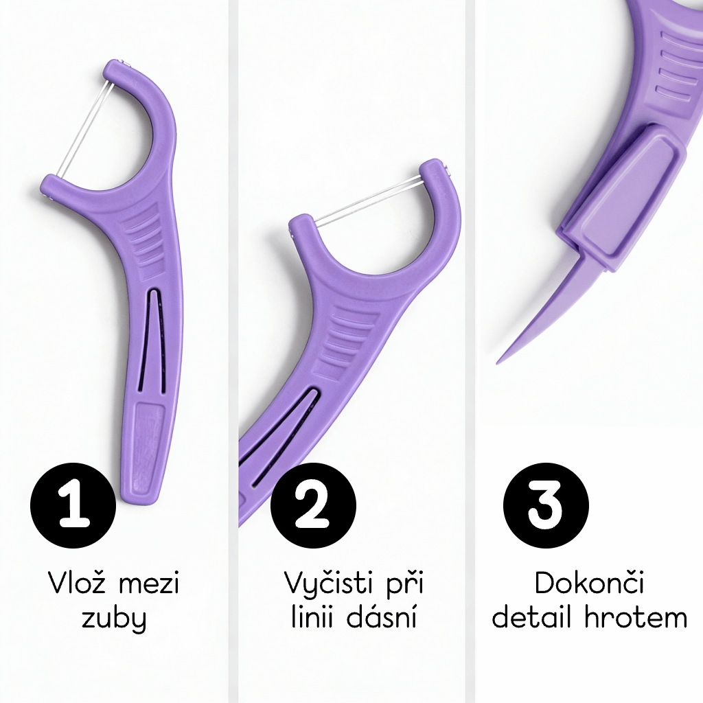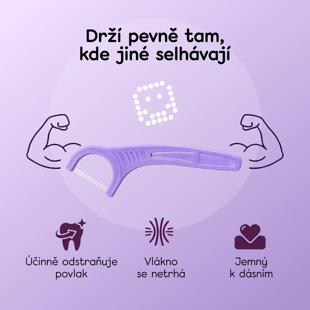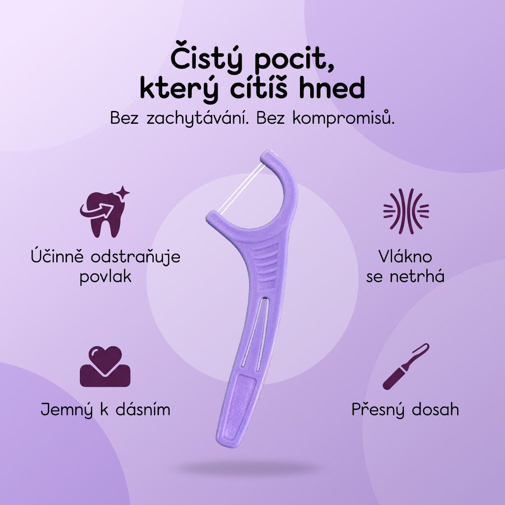 Na místech, kam se kartáček nedostane, rozhoduje pravidelná péče. Dentální párátka s nití účinně odstraňují zbytky jídla i povlak mezi zuby a pomáhají udržovat zdravé dásně a svěží dech každý den.