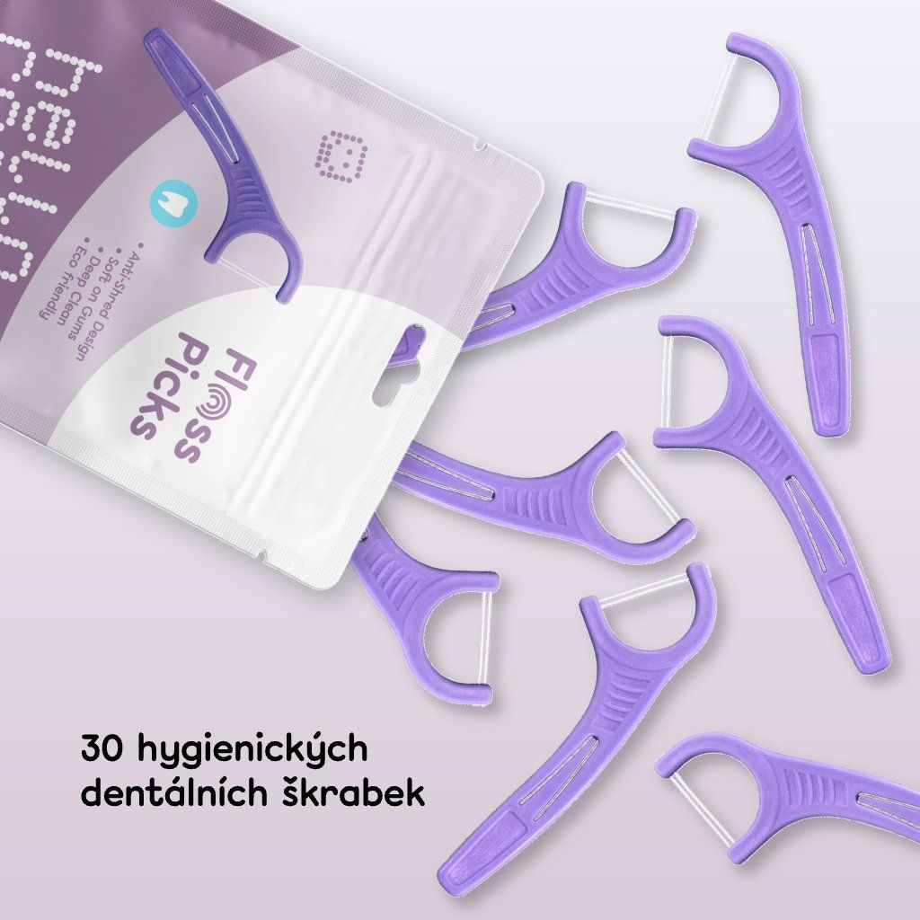 Čištění mezizubních prostor je rozhodující, protože právě tam se usazuje povlak, který kartáček často neodstraní. hello coco Floss Picks snadno dosáhnou i do těžko dostupných míst, hrot zbaví zbytky jídla a dvojitá nit vyčistí prostor mezi zuby i linii pod dásněmi.
